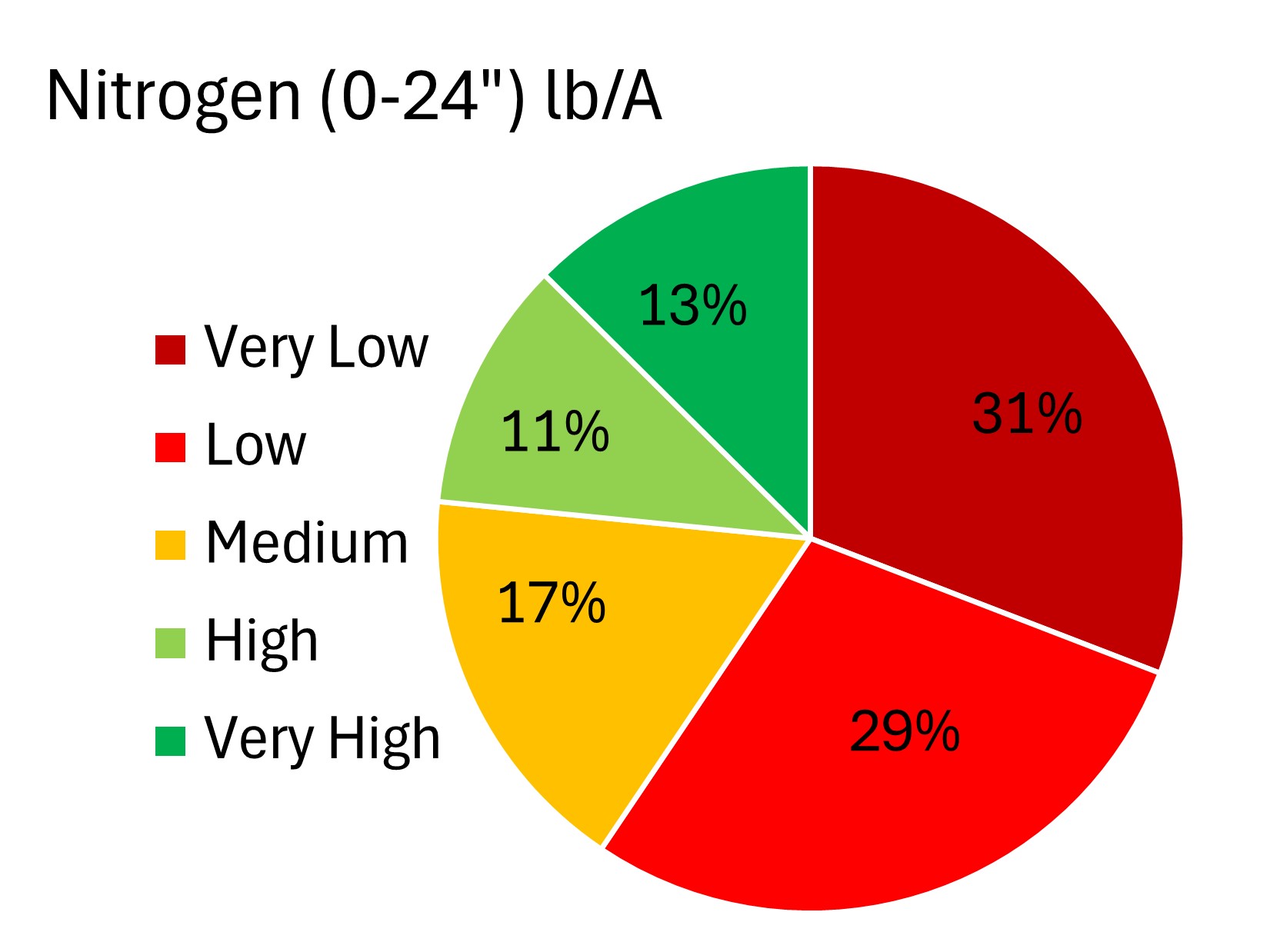 Unlike the dryland fields, there were many irrigated fields that had high (61-80 lb/A) to very high (> 80 lb/A) levels of nitrogen left in the top two feet of the soil. Soil testing post-harvest can help you dial in crop nutrition and prevent under or over application of nutrients.High residual nitrogen levels can result from several factors, including mineralization of organic matter and crop residue, as well as poor crop growth that limited fertilizer uptake. While not all of this nitrogen will be available to the next crop due to ongoing nitrogen cycling and potential losses, residual nitrogen can reduce fertilizer costs in the following season. Alternatively, planting winter crops or cover crops can help capture excess nitrogen and reduce losses. Be cautious when planting nitrogen-fixing crops such as soybean into fields with high residual nitrate, as elevated nitrate levels can inhibit nodulation and exacerbate iron deficiency chlorosis (IDC).
