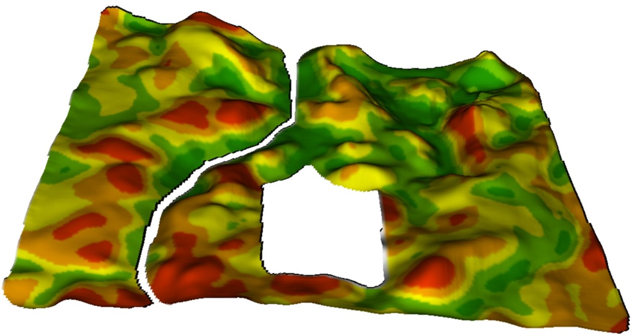 Organic matter was highest in the green areas, followed by yellow and then red. Many red areas correspond with hill tops, and the reduced organic matter is likely a result of erosion (image below). Given the role organic matter plays in water holding capacity and nutrient cycling, this probably a contributing factor for reduced yield in the yellow/red areas.